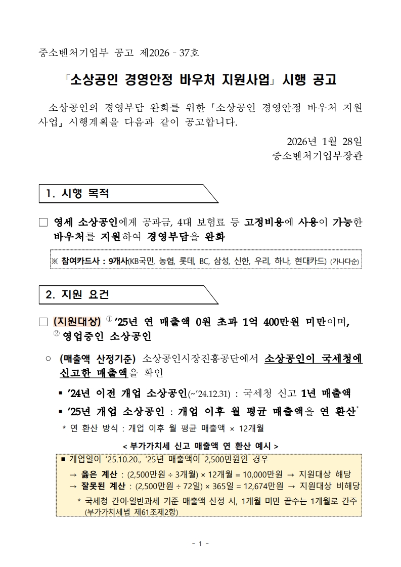 [중소벤처기업부] 『소상공인 경영안정 바우처 지원사업』 시행 공고