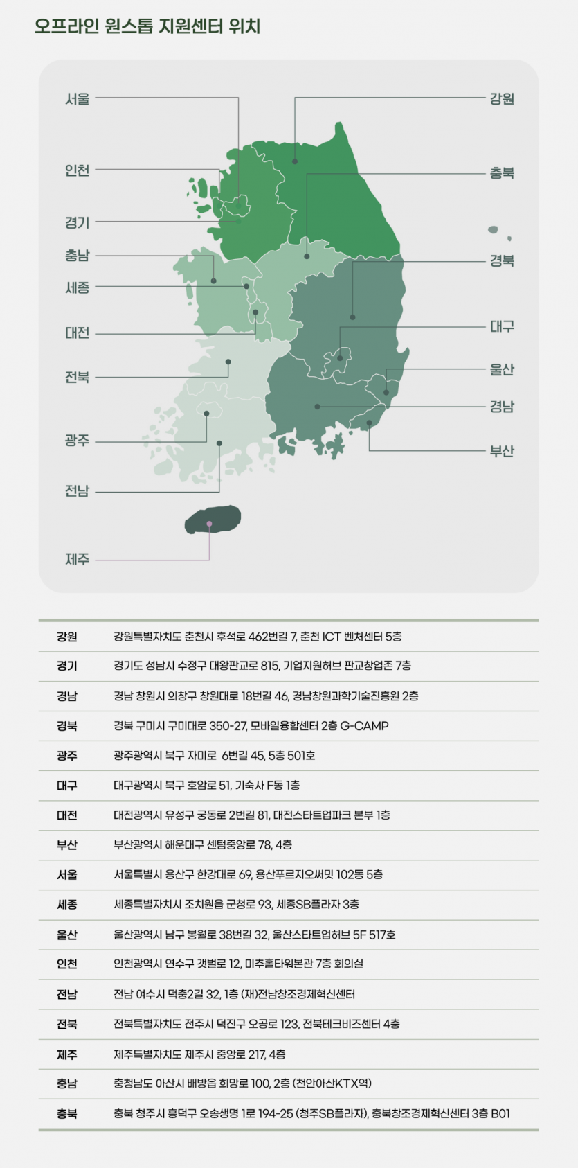 오프라인 원스톱 지원센터는 '25.12.1.(월)에 개소하여 전국 17개 창조경제혁신센터에서 운영 중입니다.